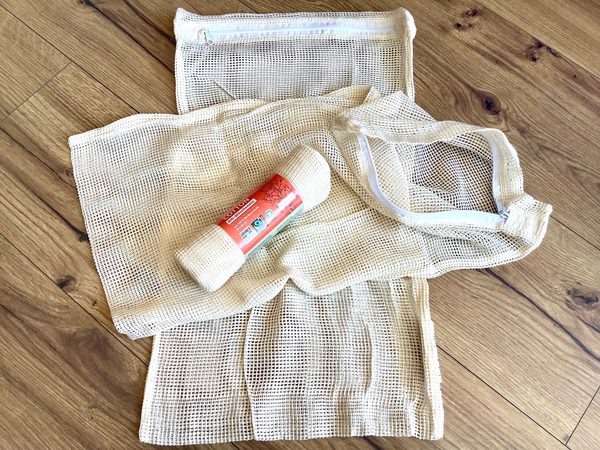 Mit diesen zwei leichten Beuteln aus hochwertiger Bio-Baumwolle kannst du ganz einfach empfindliche Wäschestücke in der Maschine schonen.