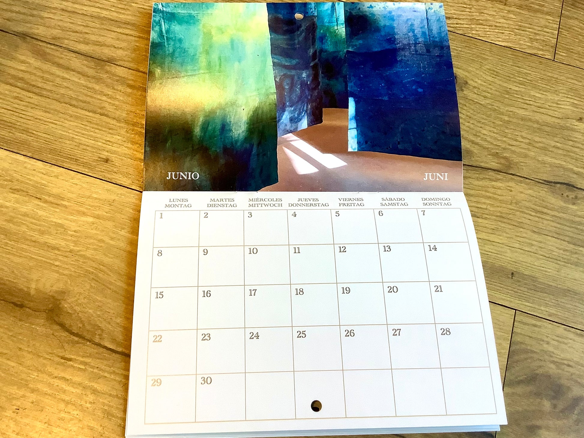 Wandkalender mit Fotos von Kunstwerken von Candela Paniagua.