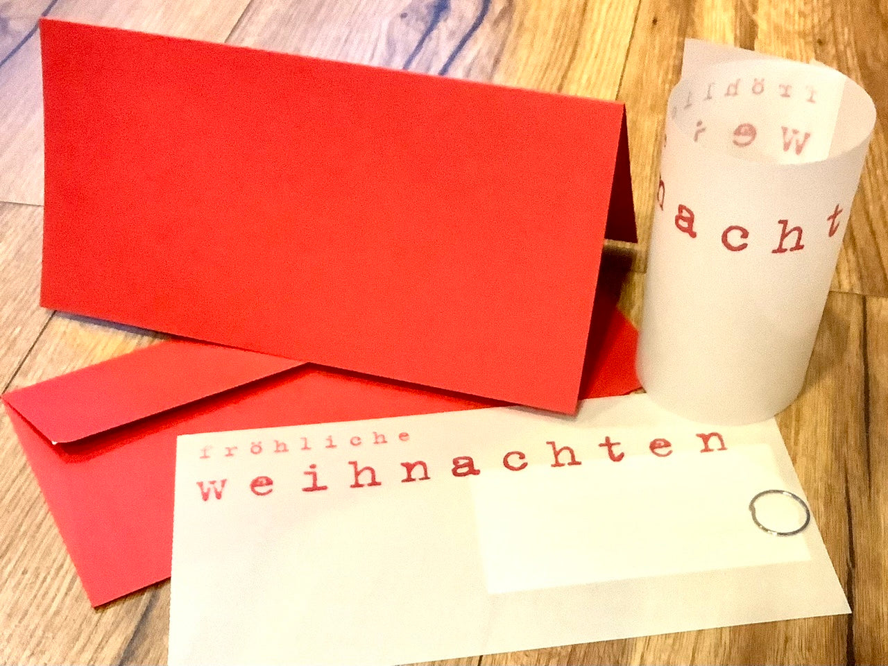 - dazu ein roter Briefumschlag in DIN lang mit Haftklebung und