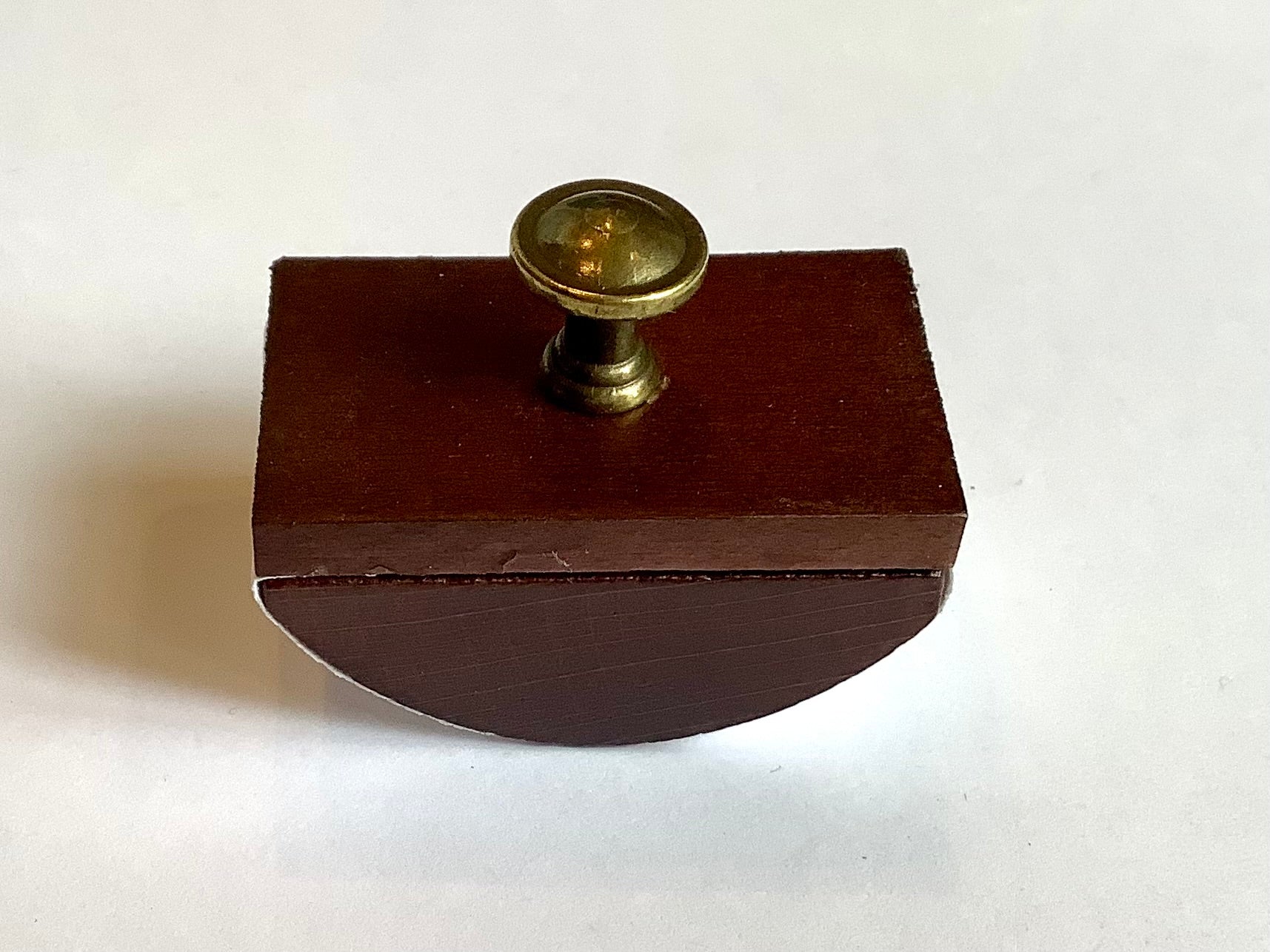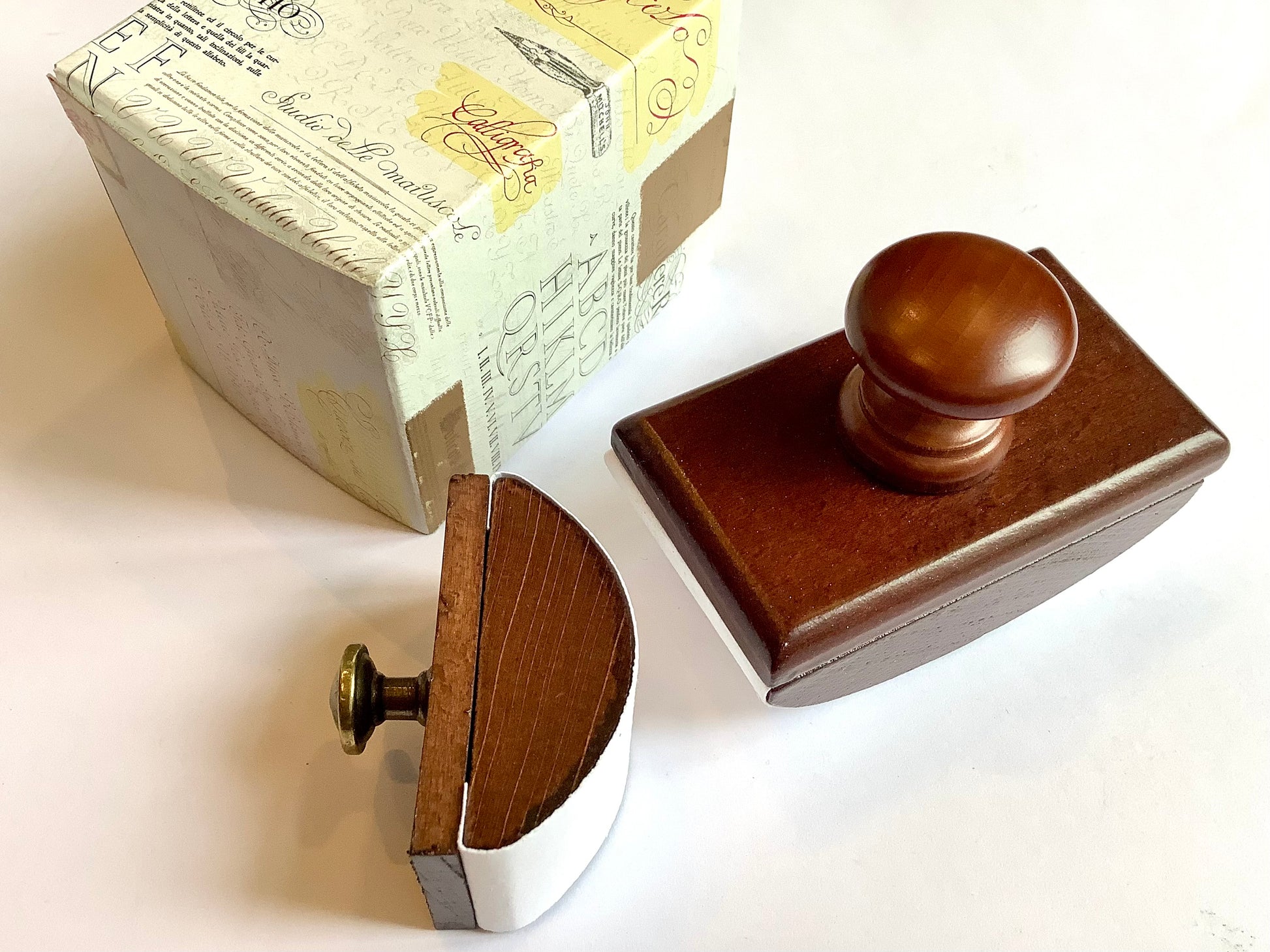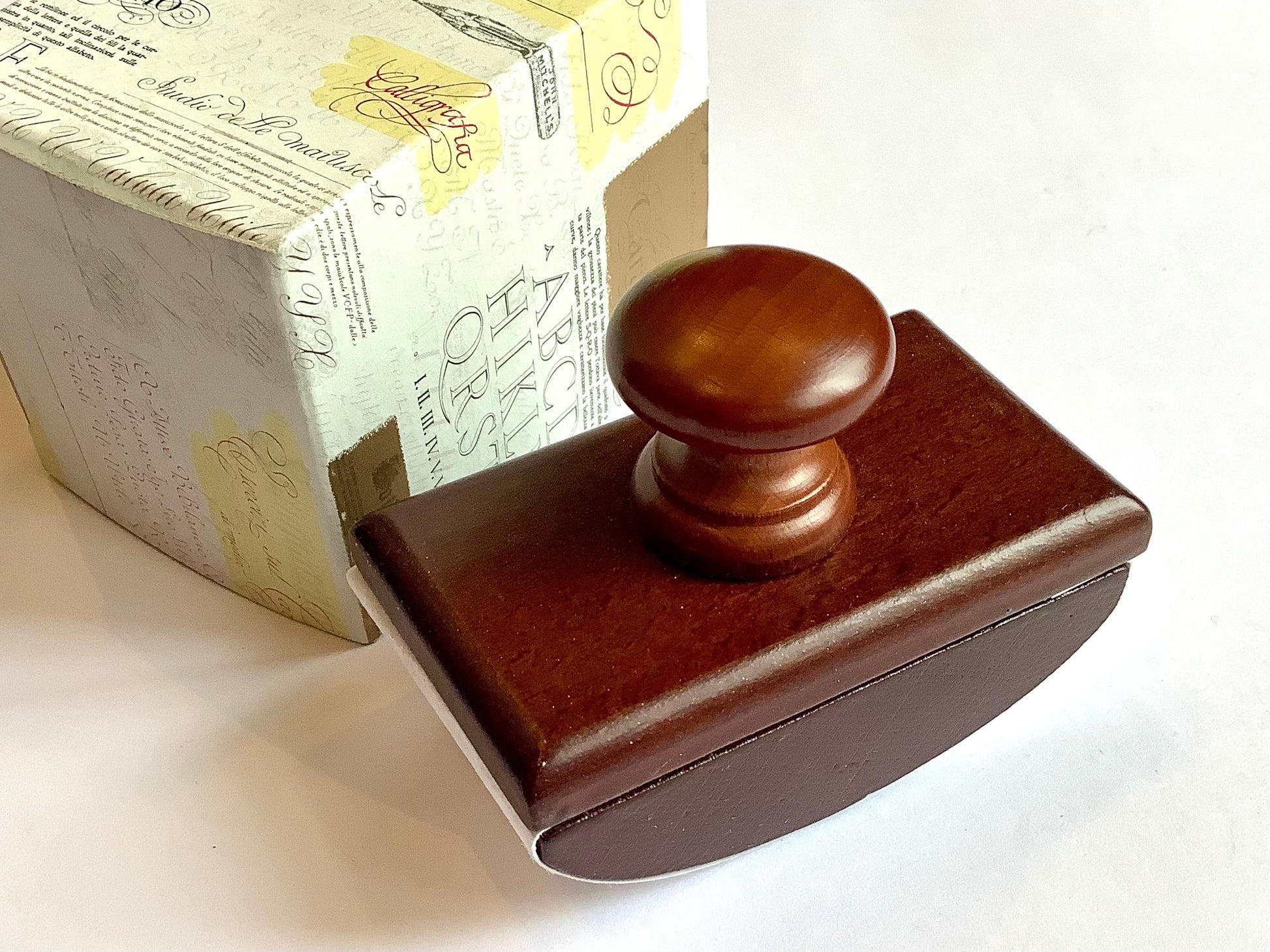 Wiegenlöscher aus Holz mit eingespanntem Löschpapier (austauschbar).