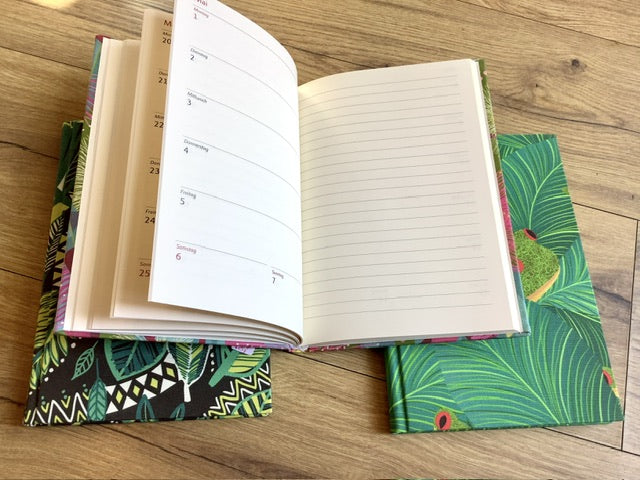 - handgemachter Wochenkalender mit Baumwoll-Stoffcover - jedes Buch ein Unikat
