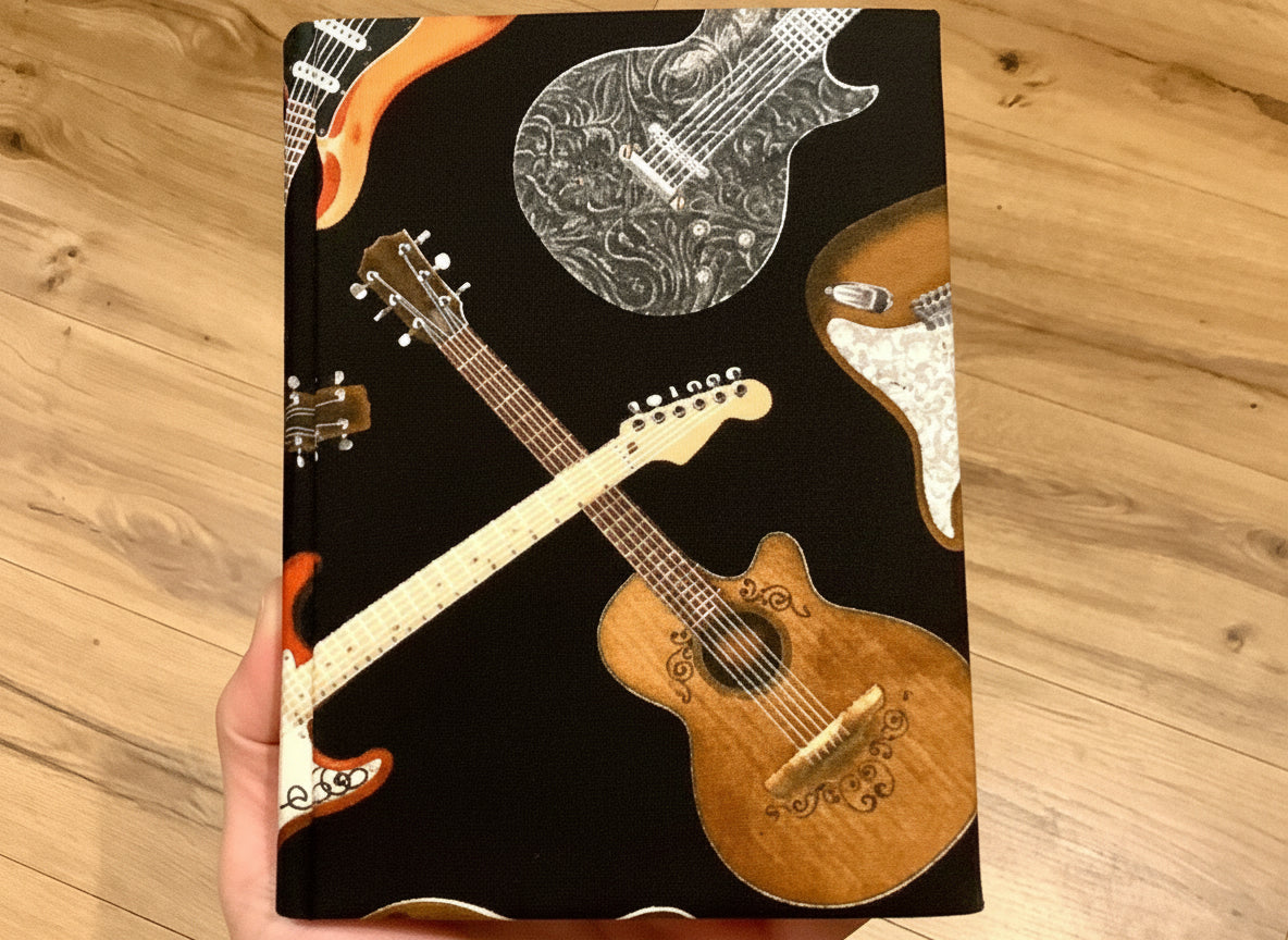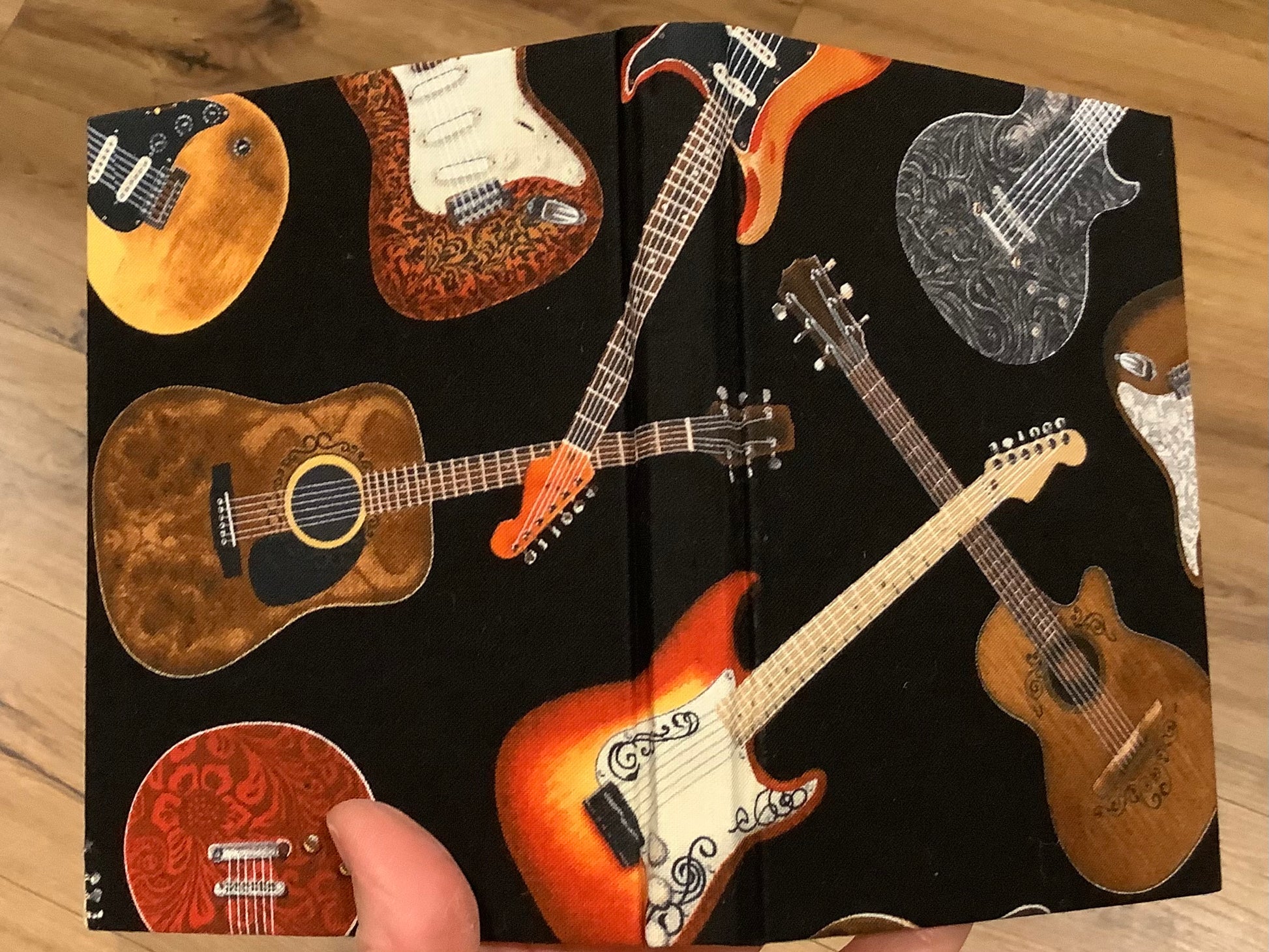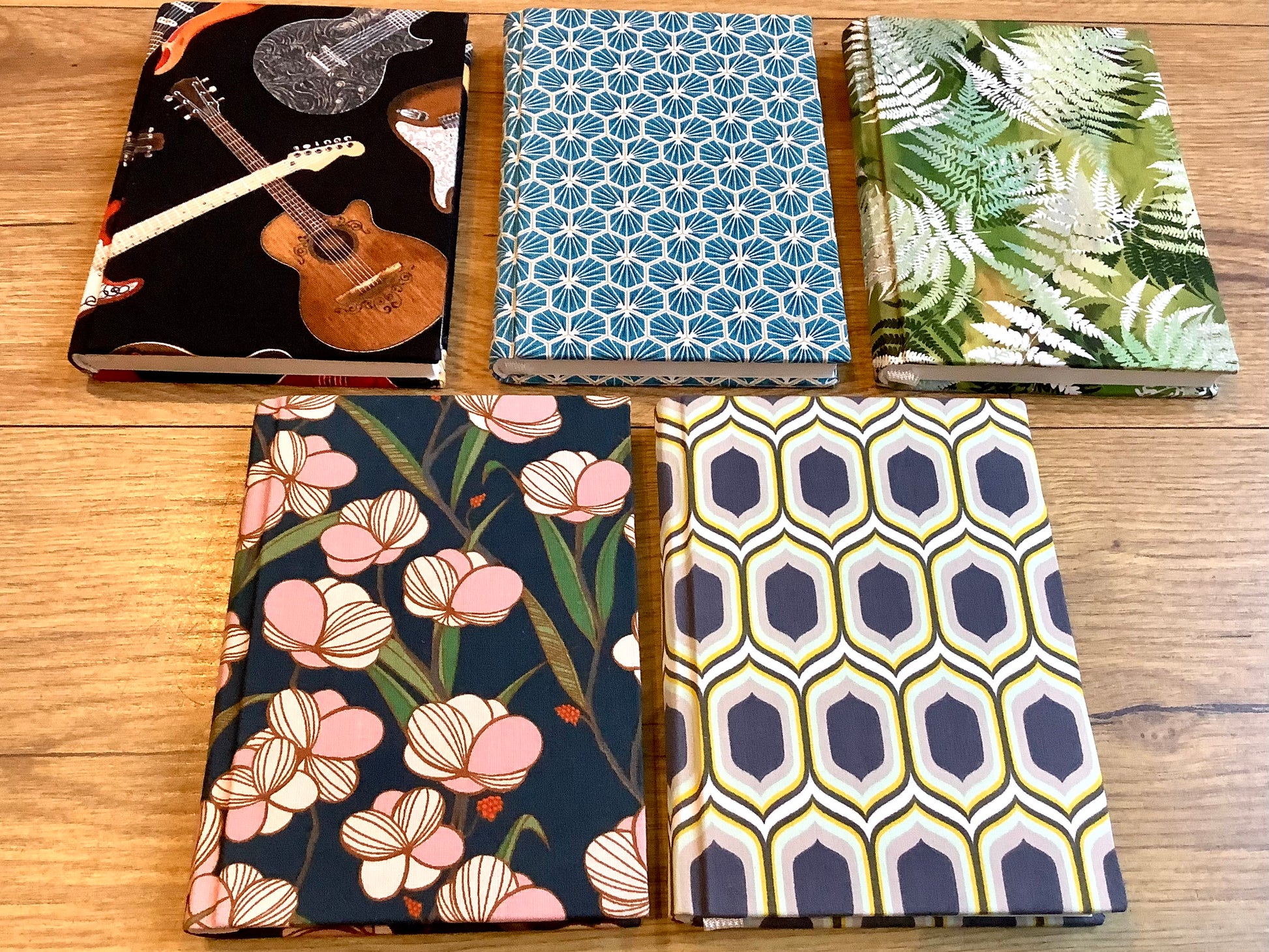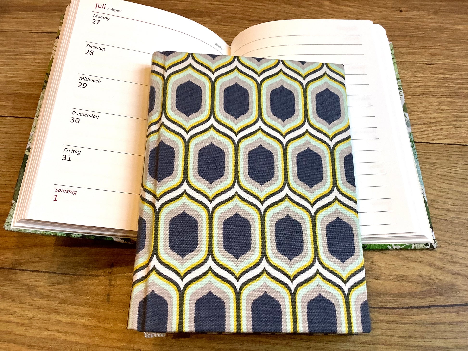 - der Buchdeckel ist mit Baumwolle mit Mustern bezogen