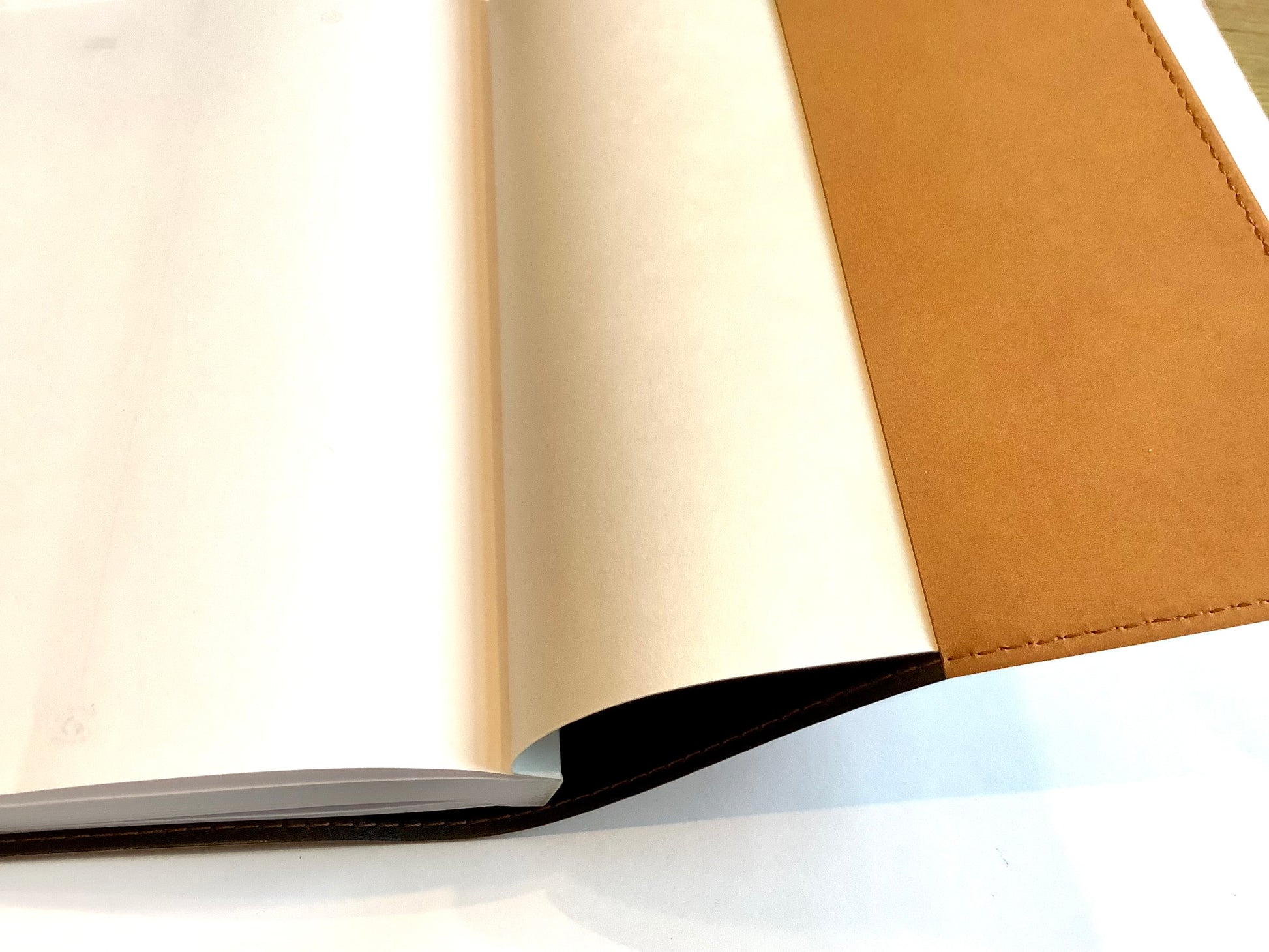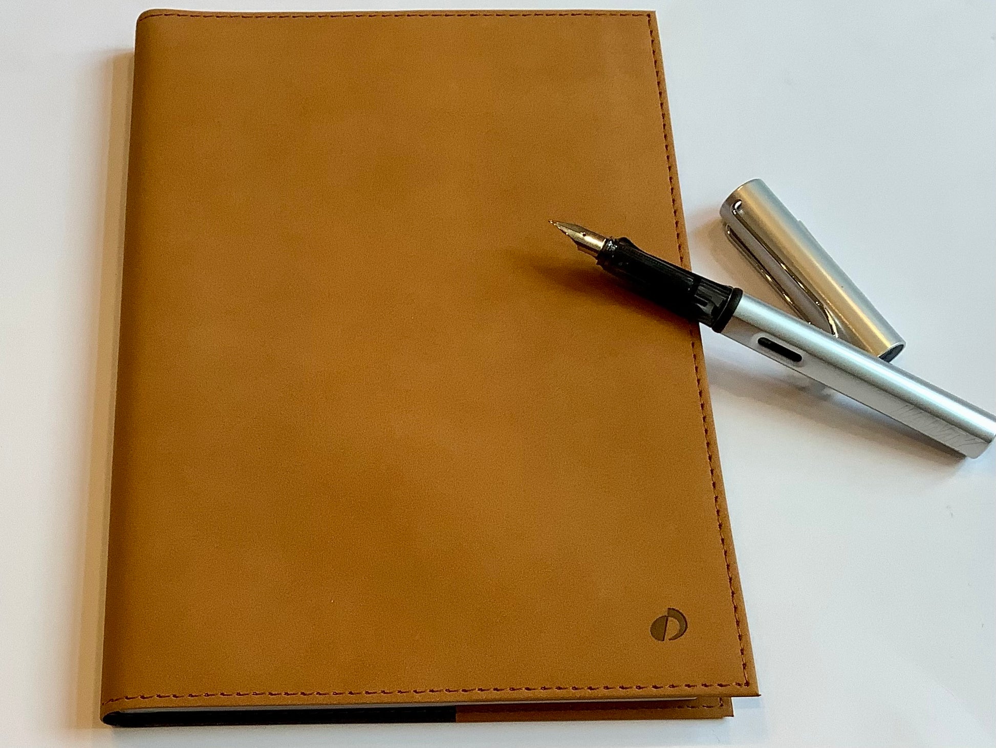Mit lederähnlichem braunen PU-Cover, Haptik wie Wildleder