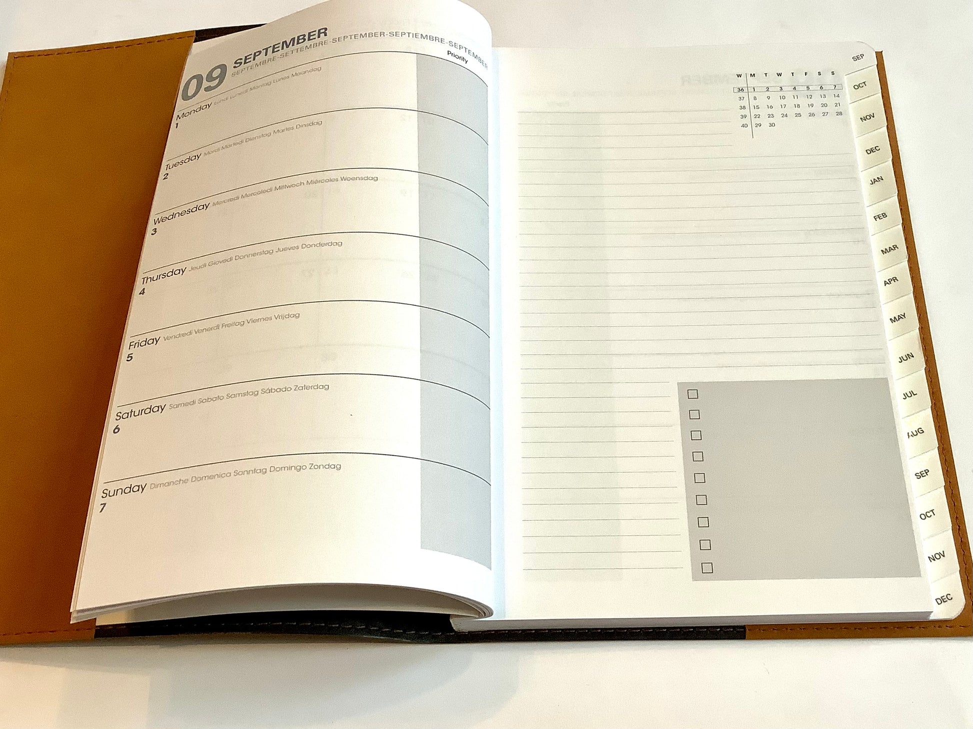 - eine Woche auf einer Seite in Querspalten, rechte Seite frei für Notizen