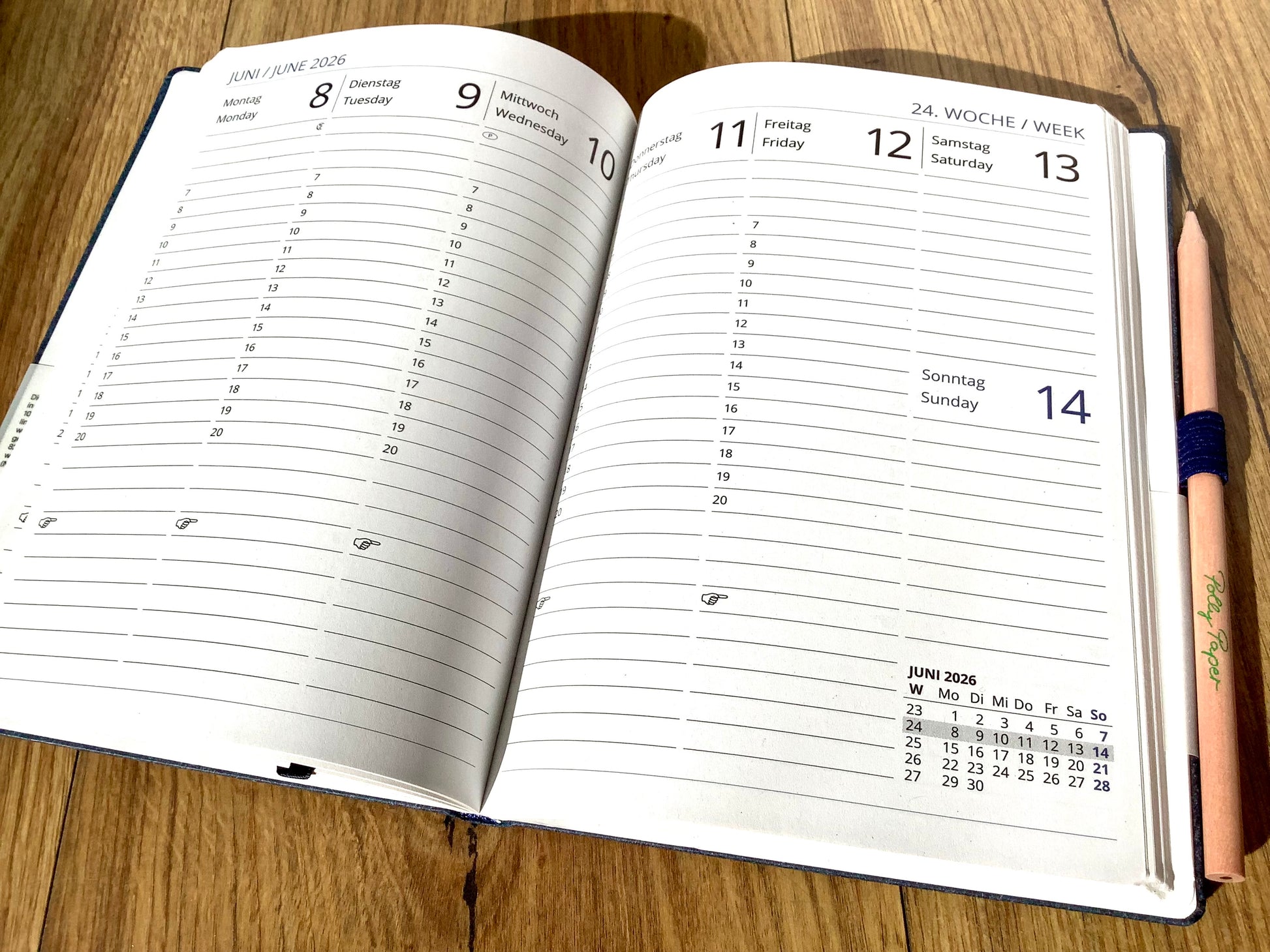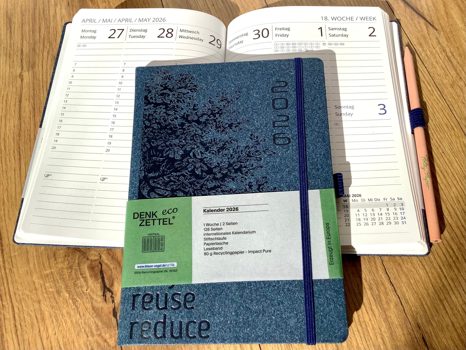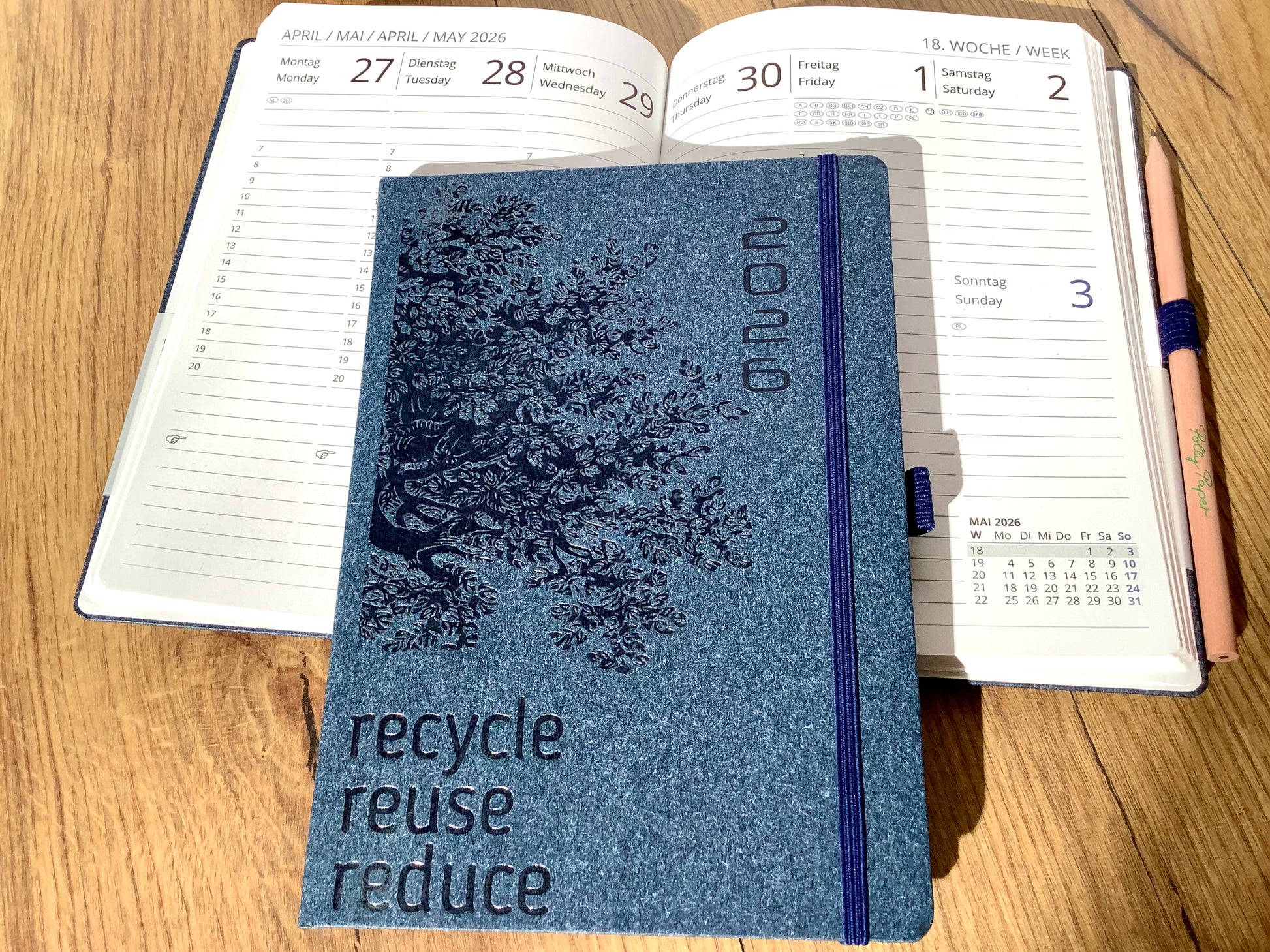 Umweltfreundlicher Wochenkalender in der Größe DIN A5 mit Hardcover in dunkelblau