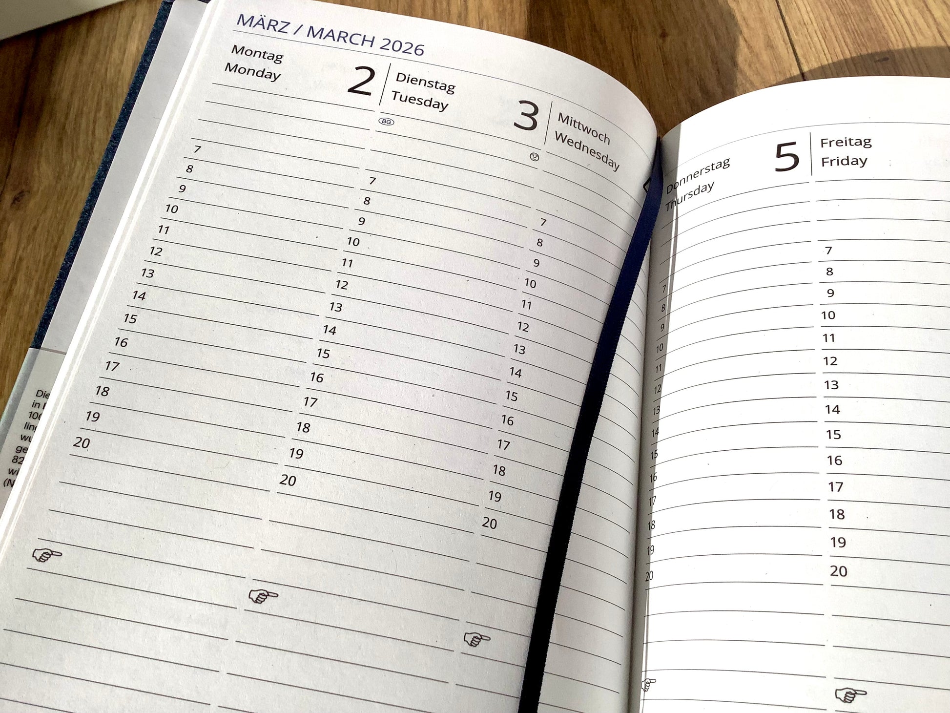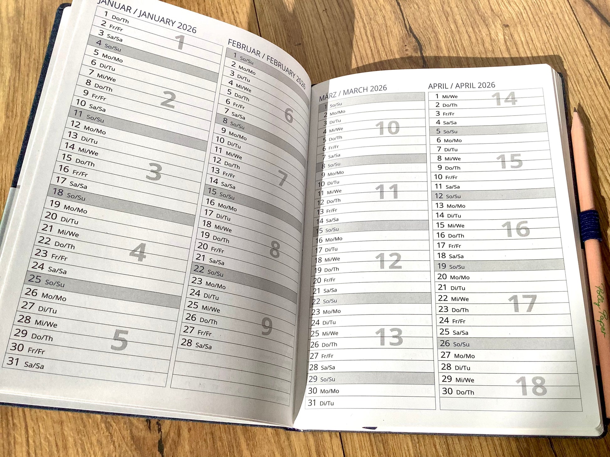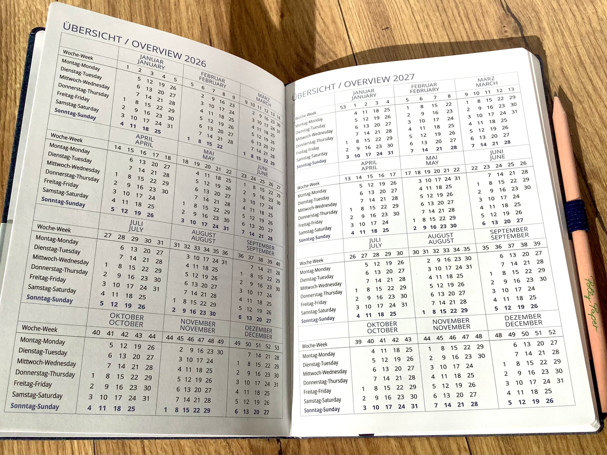 Umweltfreundlicher Wochenkalender in der Größe DIN A5 mit Hardcover in dunkelblau