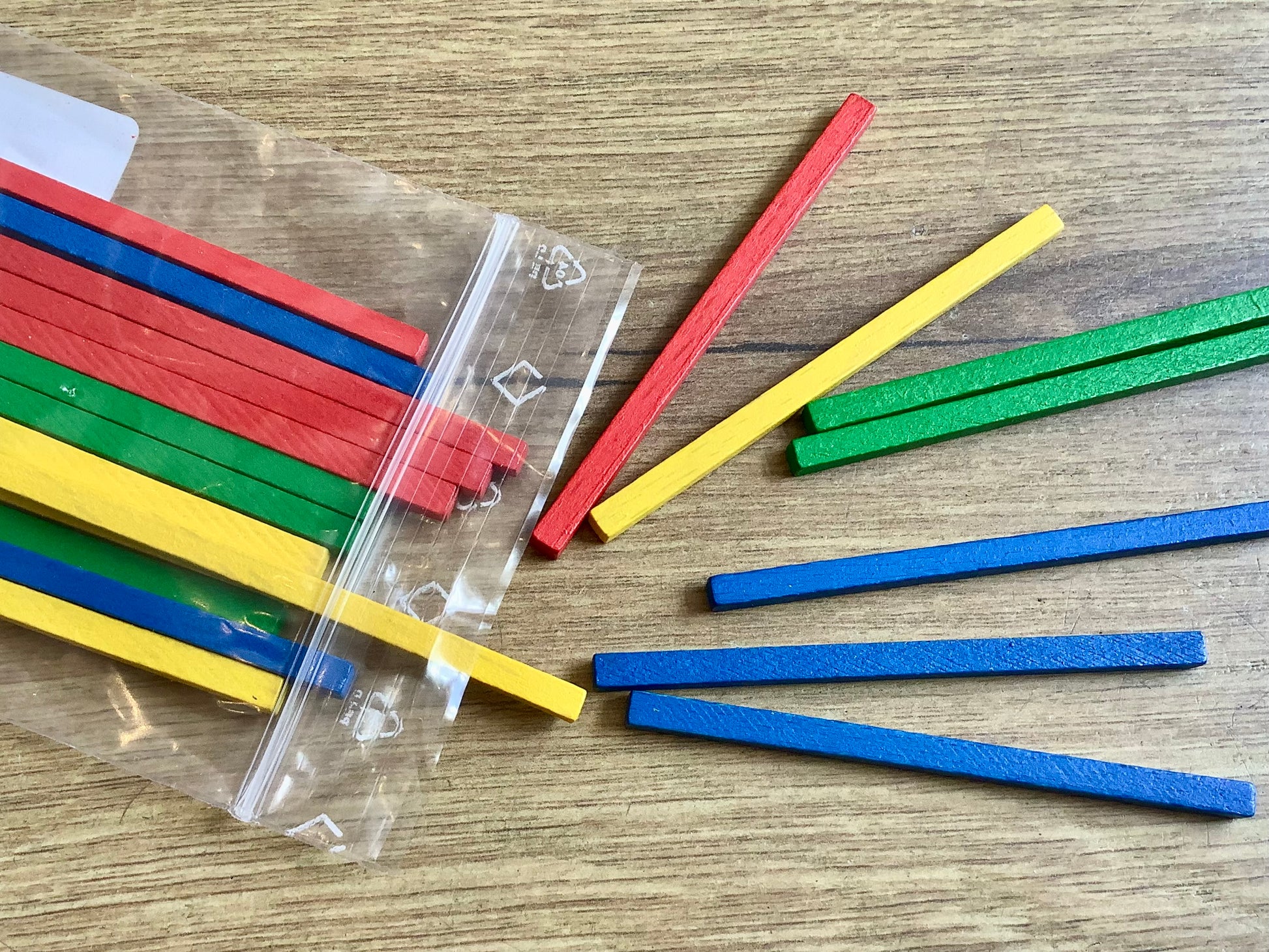 Bunte Holzstäbchen zum Zählen lernen