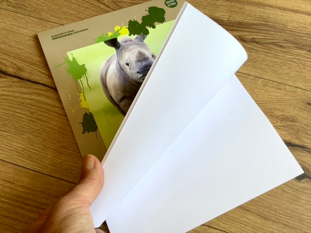 - Offset-Papier mit 120 g/m² - damit auch dick genug für Wasserfarben